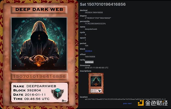 中本聪卡上刻有中本聪“deepdarkweb”。资料来源:Ordinals.com