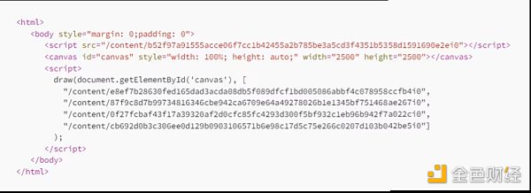 通过递归,可以创建 HTML 铭文。通过利用 HTML canvas 元素,刻录者可以使用 JavaScript 创建图形,如下图所示: