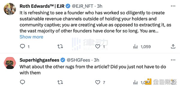对于此事,社区用户有的表示 Luca「正在创造价值,而不是提取价值」,也有的指出 Luca 对于 Horlomite Research 文章中提出的其他涉嫌被 rug 的项目没有做出回应。