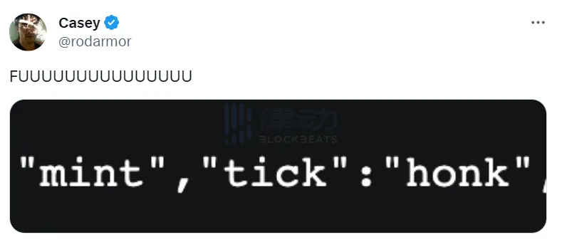 「鹅」的火热引出了以 $HONK 和 $GOOS 为首的几个 BRC-20 Token。比特币 NFT 项目的热度外溢到出现新的 BRC-20 Token,上一次这样的情况出现还得是 Taproot Wizards 引起 $WZRD 的 FOMO 吧,太久没有看见了...