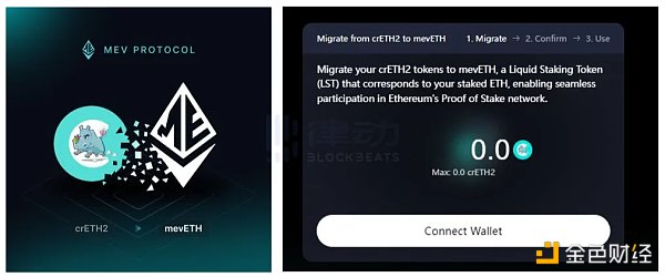 此外,团队还与 Cream Finance 合作,CRETH2 向 mevETH 的迁移也已上线。在 crETH2 下质押的 ETH 已经质押在 MEV 协议验证器上。为了铸造 mevETH,crETH2 代币被视为 ETH。从 crETH2 到 ETH 的兑换率是通过赎回比率完成的,1 crETH2 兑换 1.13 ETH。