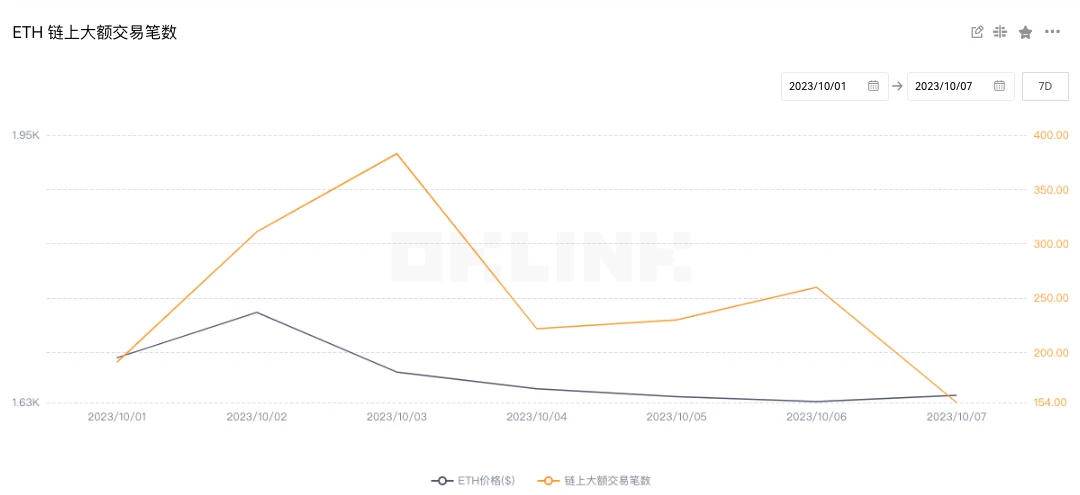 欧科云链 OKlink 数据 显示,上周链上大额交易笔数达到 1751 ,相较于前一周(982)环比上涨 78.3% ,巨鲸交易热情明显上升。