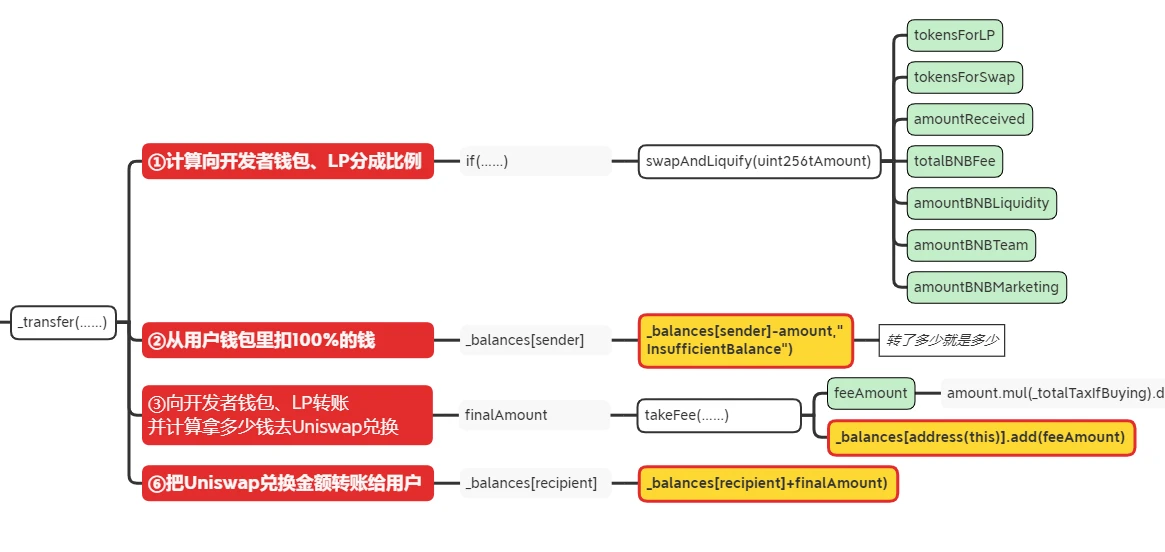本小节展示一个具备交易税的 Meme 币计算流程如下图(仅关注红色部分)。