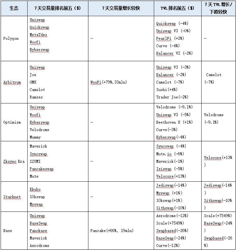 DEX:Dex combined TVL 11.43 billion,和上周基本持平。Dex 24 小时交易量2b illion, 7 天交易量 12.9 2b illion, 较上周增加 2.5 billion。