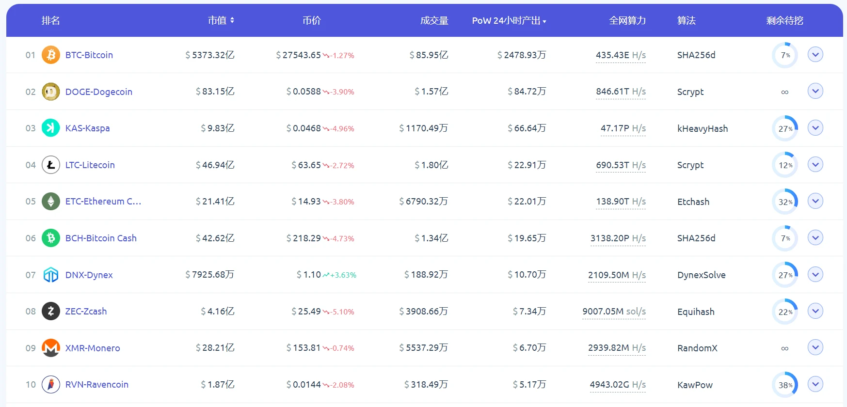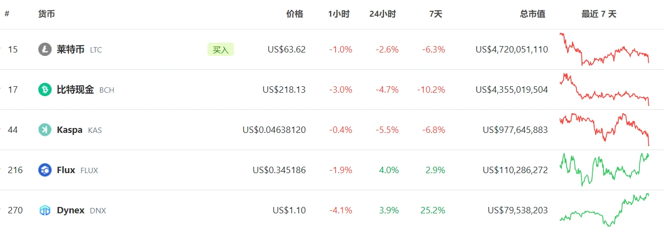 根据鱼池披露的信息,按照产出排名,KAS 排名第三,仅次于 BTC 和 DOGE;LTC 排名第四;BCH 排名第六;DNX 排名第七。DNX 的排名有明显增长, 9 月中旬时,DNX 的排名为第九。