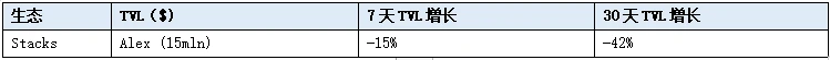 三大 LSD 协议中,从价格表现来看,LDO 一周下跌 3.7% ,RPL 下跌 11.6% ,FXS 下跌 7.1% ;从 ETH 质押量角度来看, Lido 一周上涨 0.84% , Rocket Pool 上涨 0.9% , Frax 上涨 1.43% 。当前 Rocket Pool 存款池余额 17859 枚 ETH,RPL 质押率 50.35% ,有效质押比例 85.74% ,较多节点需要补充抵押品。SSV 目前 TVL 增长停滞,合作伙伴未新增更多节点运营,但由于其是以色列项目,短期可能会受到关注。