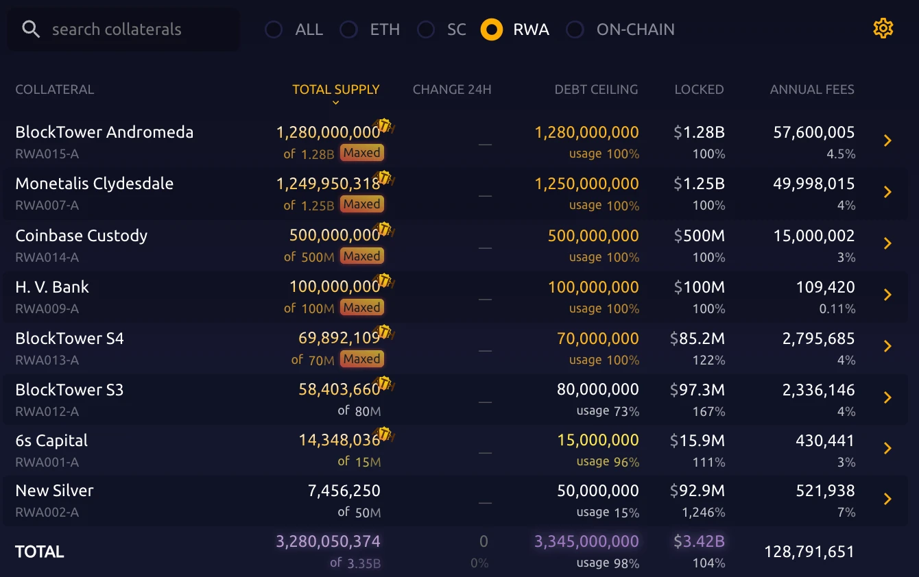 借贷: MakerDAO RWA 业务规模即将达到债务上限。