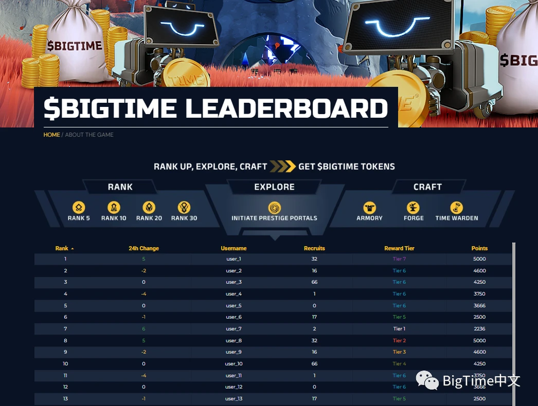 $BIGTIME 季前赛排行榜是一个特殊的空投项目,为庆祝 Big Time 经济和 $BIGTIME 代币的发布而推出。该项目总计分配 97, 500, 000 $BIGTIME,将在季前赛上线后的第 1、 2、 3 个月末通过 3 轮空投发放。排行榜每日更新,每月底重置。