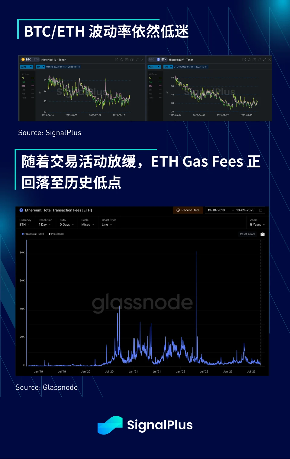 在加密货币方面,过去一周价格仍继续挣扎,虽然宏观资产类别发生各种变动,但加密货币的波动率仍然较为低迷,随著熊市继续发展,交易放缓,Etherum gas fee 已经回落至历史低点附近,而随著 BTC 在长时间的熊市中重新占据主导地位,BTC 与 ETH 的比率回升至一年来的高点。