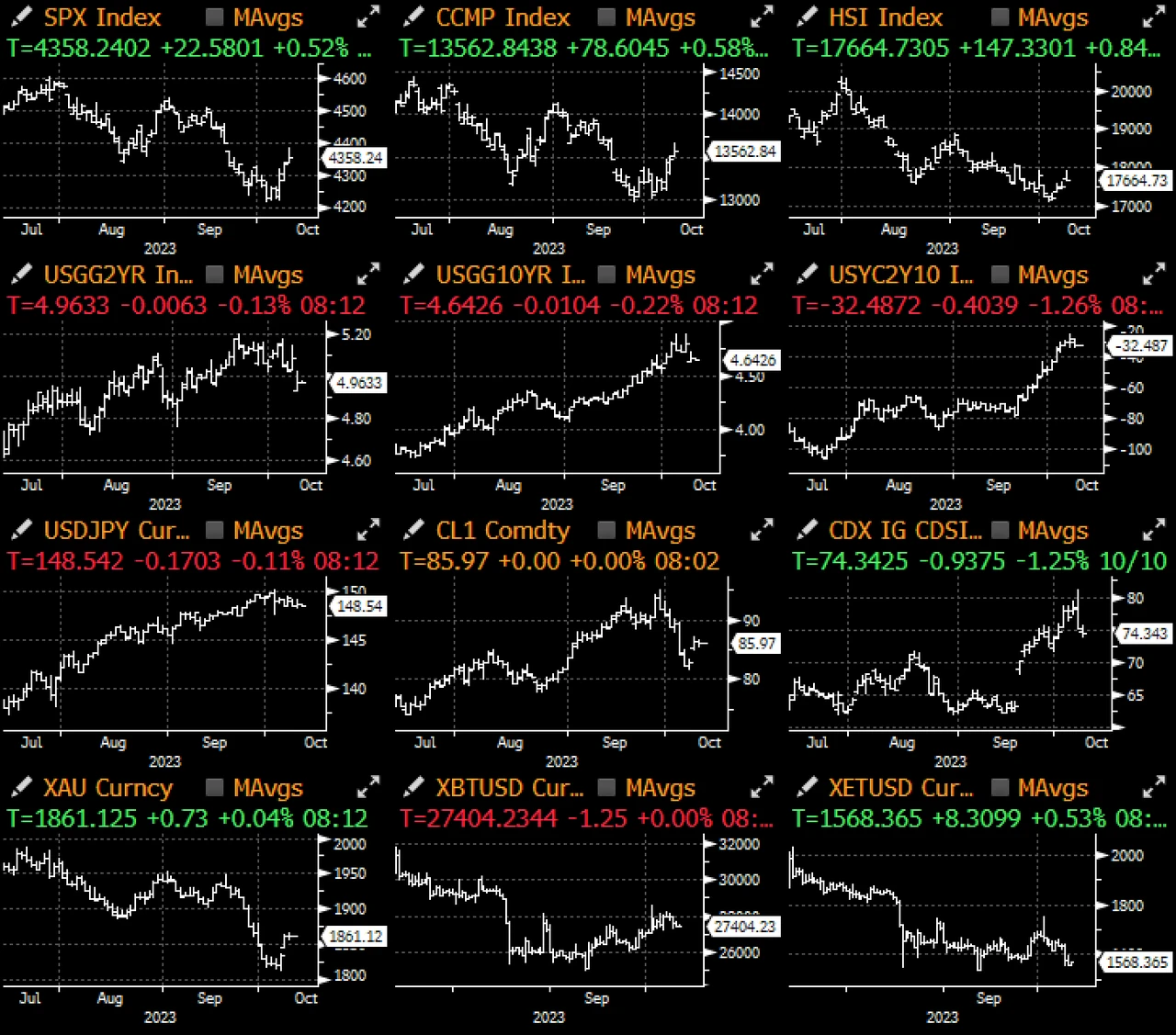 最后,《华尔街日报》的 Timiraos(美联储传声筒)隔夜发表了一篇题为“债券收益率上升可能会延长美联储暂停加息时间”的文章,为本周一开始美联储的鸽派论调画上圆满句号。