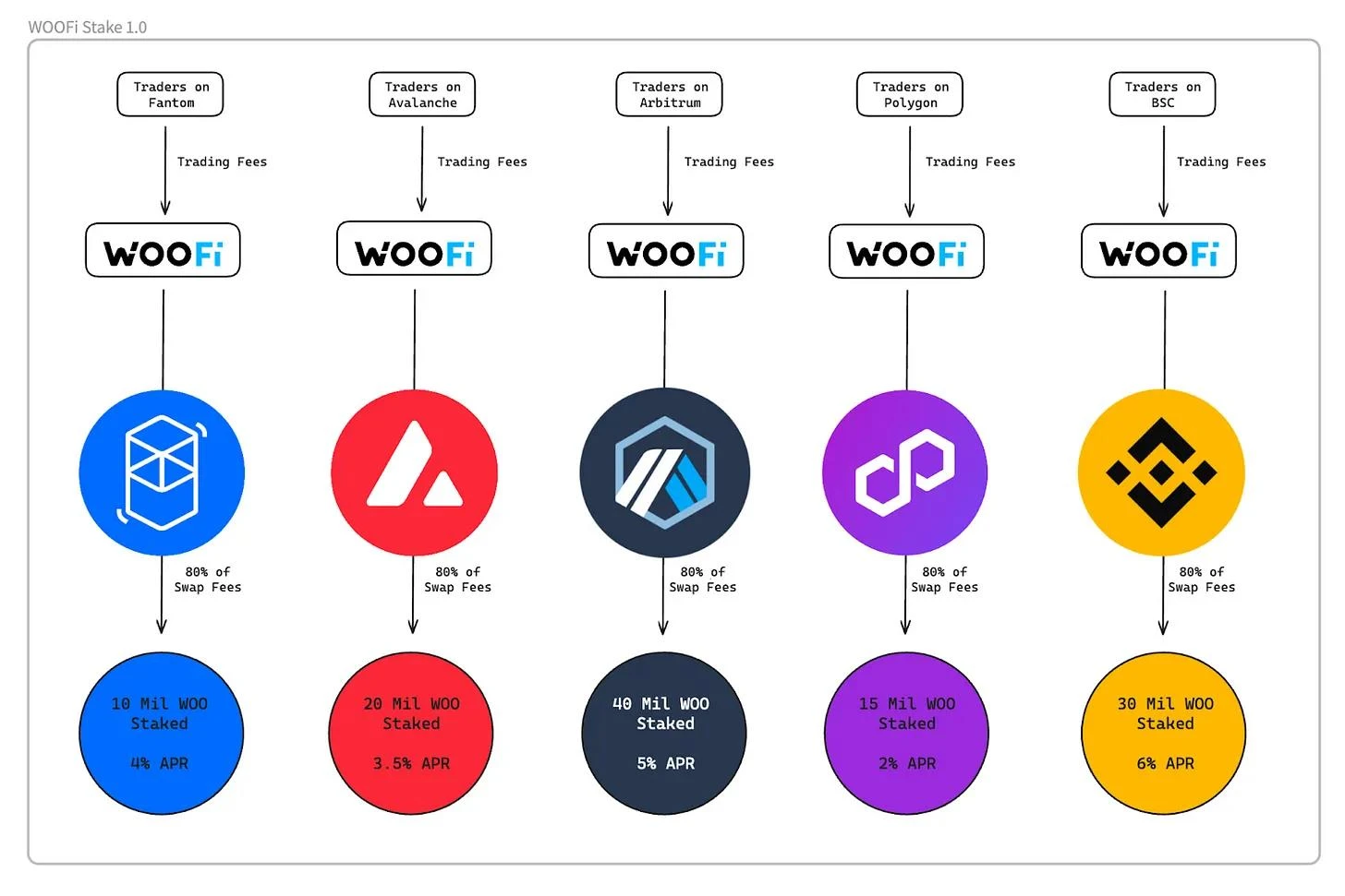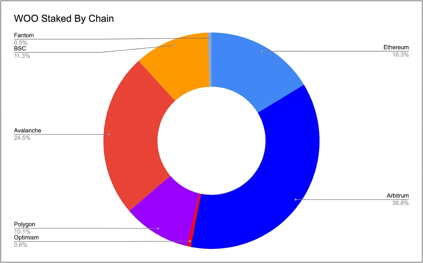 用户可以在这些链上质押 WOO:Polygon、Arbitrum、BSC、Avalanche、 Optimism 和以太坊。