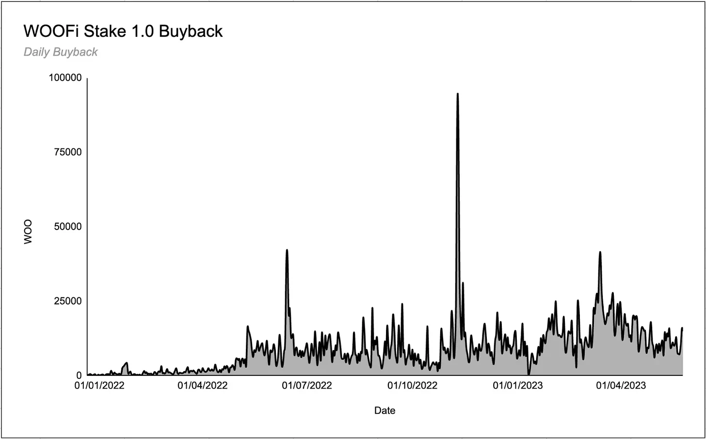 在质押机制的第一版中,WOO 协议使用 WOOFi 生成的 80% 互换费用回购 WOO 代币并分配给 WOO 质押者。这非常成功,超过 1 亿代币质押在多个链上,质押者总共赚取了 460 万 WOO 代币。