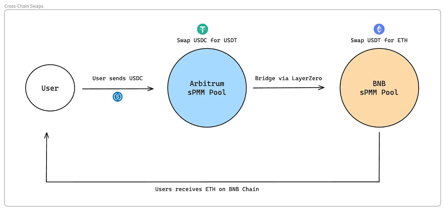 sPMM 池管理者对冲,与用户采取相同仓位以保持市场中性。(即由于做市商卖出了 ETH 获得 USDC,所以他们要买入 ETH 支付 USDC,或使用永续合约等其他工具增加 ETH 头寸)。