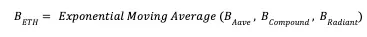 例如,假设 ETH 的借贷利率仅考虑三个平台: Aave 、 Compound 和 Radiant :