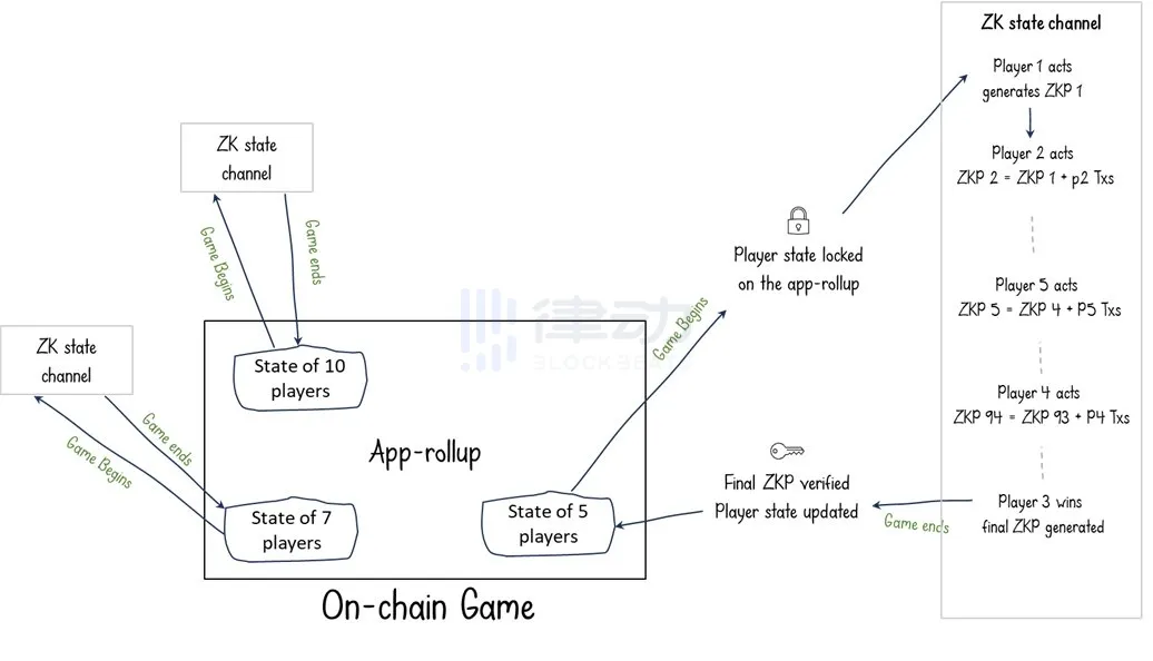 零知识证明为解决这个问题提供了便利。状态通道的参与者只需要生成一个链下证明,以证实他们的所有互动和签名都是有效的。这个证明可以在链上进行低成本验证,从而实现大幅节省成本。那么,这与扩展多人链上游戏有何关联?