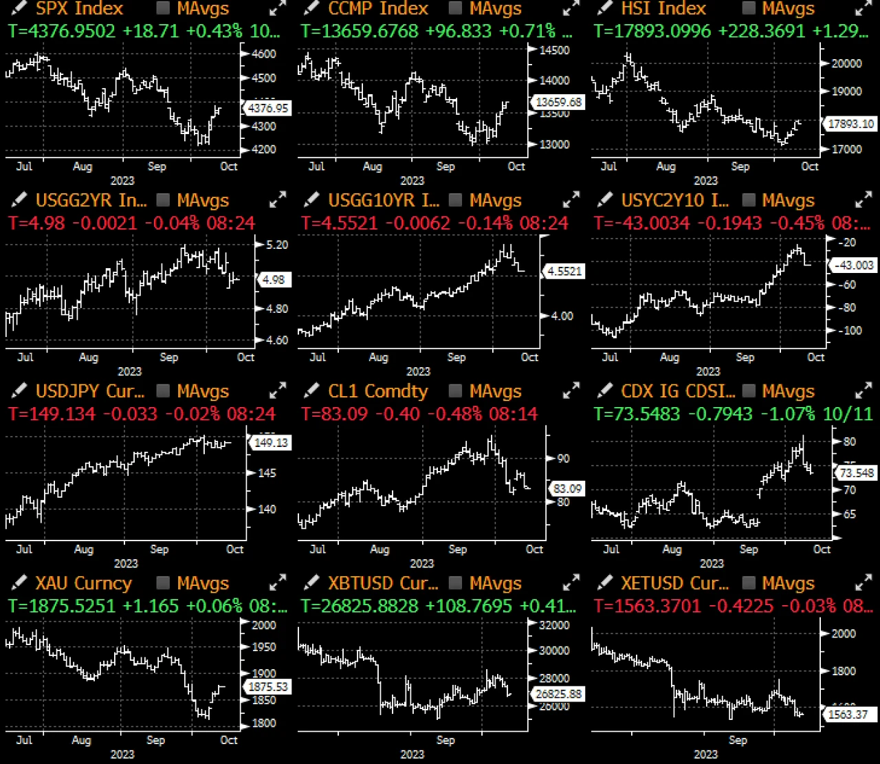 市场原先预期迎来一个平静的交易日,不过本应已经过时的 FOMC 会议纪要却显示了出人意料的鸽派论点,暗示政策利率已达到“足够限制性”,经济风险将是双向的;会议纪要多次提到了“政策利率峰值”,以及“政策决议和沟通的重点应从利率升至多高转向将利率保持在限制性水平多长时间”,此外,尽管目前经济展现韧性,但“许多”官员仍看到了经济增长面临的下行风险,并一致认为信贷收紧可能会抑制经济活动;最后,美联储官员首次在书面评论中讨论到“期限溢价”的走高,在收益率曲线已从 7 月低点走陡了约 60 个基点的背景下,他们对这一议题的关注也正在增加。