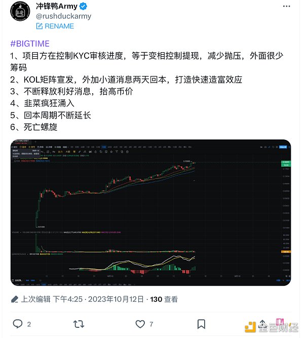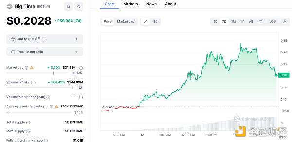 10月10日,Big Time 开启了季前赛活动,除了能在游戏中打金获取代币收益外,参与活动还能获得代币的未来空投奖励;加之交易所上线代币,其热度自然在短期内被迅速推高。
