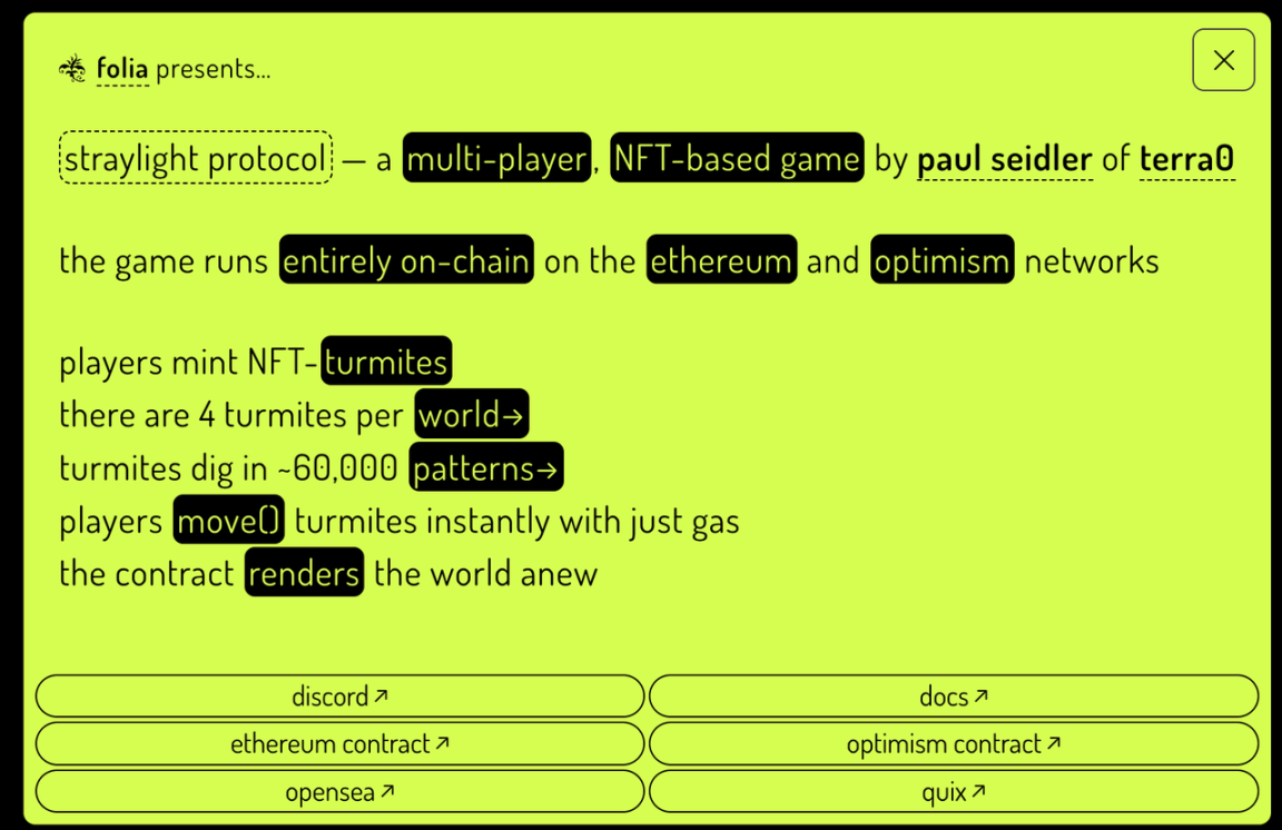 目前有游戏 Straylight protocol 使用 Paul Seidler 发行了游戏, Straylight 是一款多人的 NFT 游戏,核心玩法就是全链游戏版本的「Minecraft」,玩家可以自动 Mint NFT,然后根据模型输入的基本规则构造自己的世界。