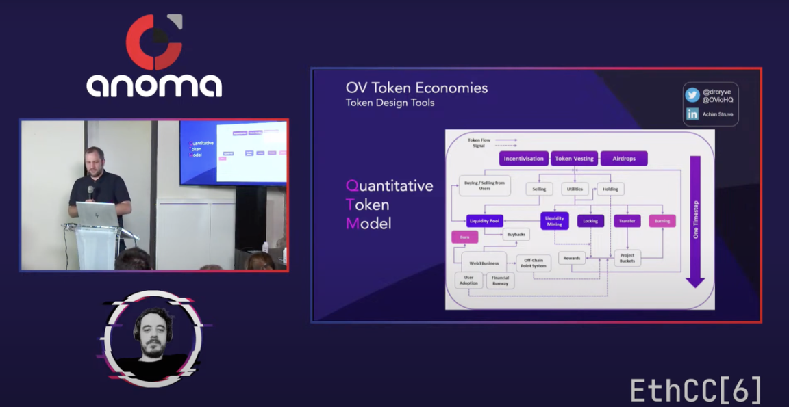 目前,Web3 已经有针对经济模型设计和经济生态发展的模拟模型了,比如 QTM 量化代币模型。 Outlier Venture 的 Dr. Achim Struve 在 ETHCC 的演讲中有提到一些经济模型设计的观点。 比如考虑到经济系统的稳健型,项目方可以通过 LLM 模型创建一个数字双胞胎 Digital Twin,对整个生态系统进行 1: 1 的模拟。