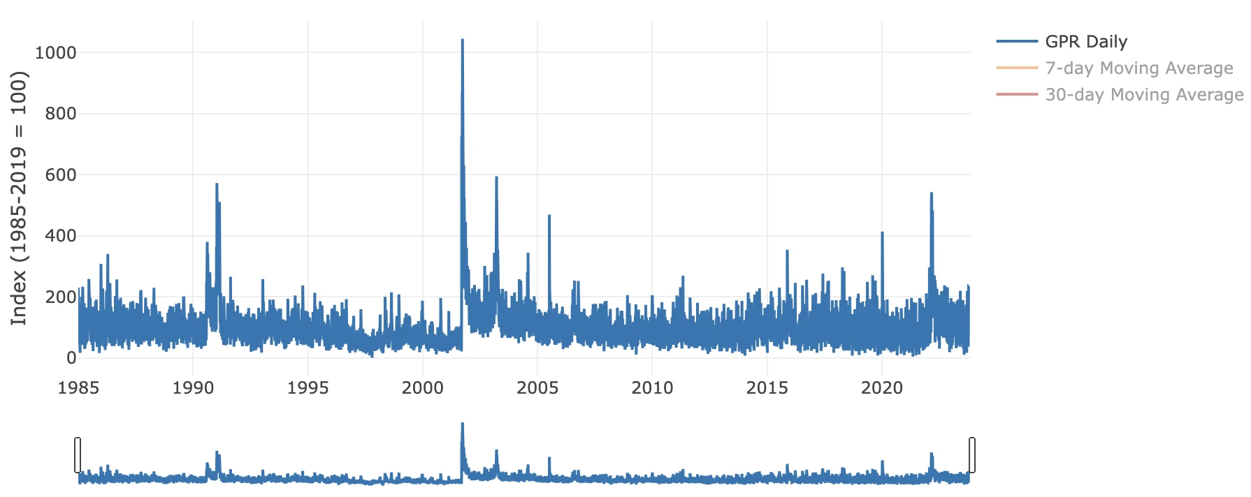 Dario Caldara and Matteo Iacoviello‘s geopolitical risk (GPR) index: