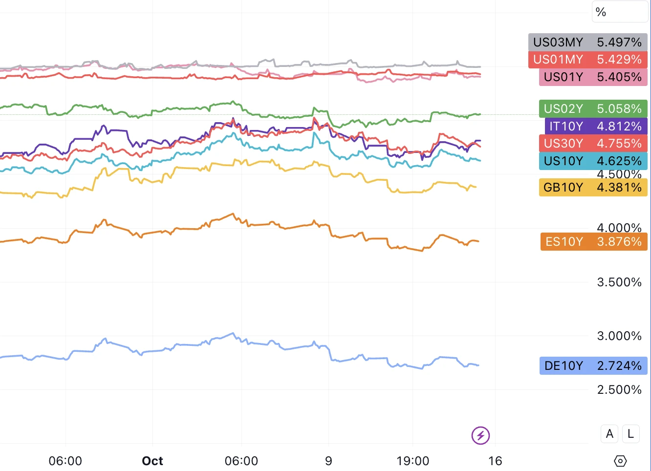 美国 2023 财年联邦预算赤字为 1.7 万亿美元, 2022 财年为 1.38 万亿美元,缺失财政纪律是市场情绪悲观的主要原因。这次拍卖的结果叠加前一天财政部扩大 4 周, 8 周, 17 周 bills 发行,规模创有史以来最高,让人想起 8 月美财政部宣布Q3天量融资计划的重演(10 yr 3 周 4% 飙到 4.46% ),现在和 8 月不一样的是,Fed 在货币政策收紧前景方面的口气略有松动,但是美债收益率则高出太多。所以现在有一些观点认为这次要是想压住收益率上涨势头,得 Powell 亲自出面进行鸽派表态才行,所以现在可是一个不对称的做多美债,包括黄金白银,甚至是加密货币好时候。