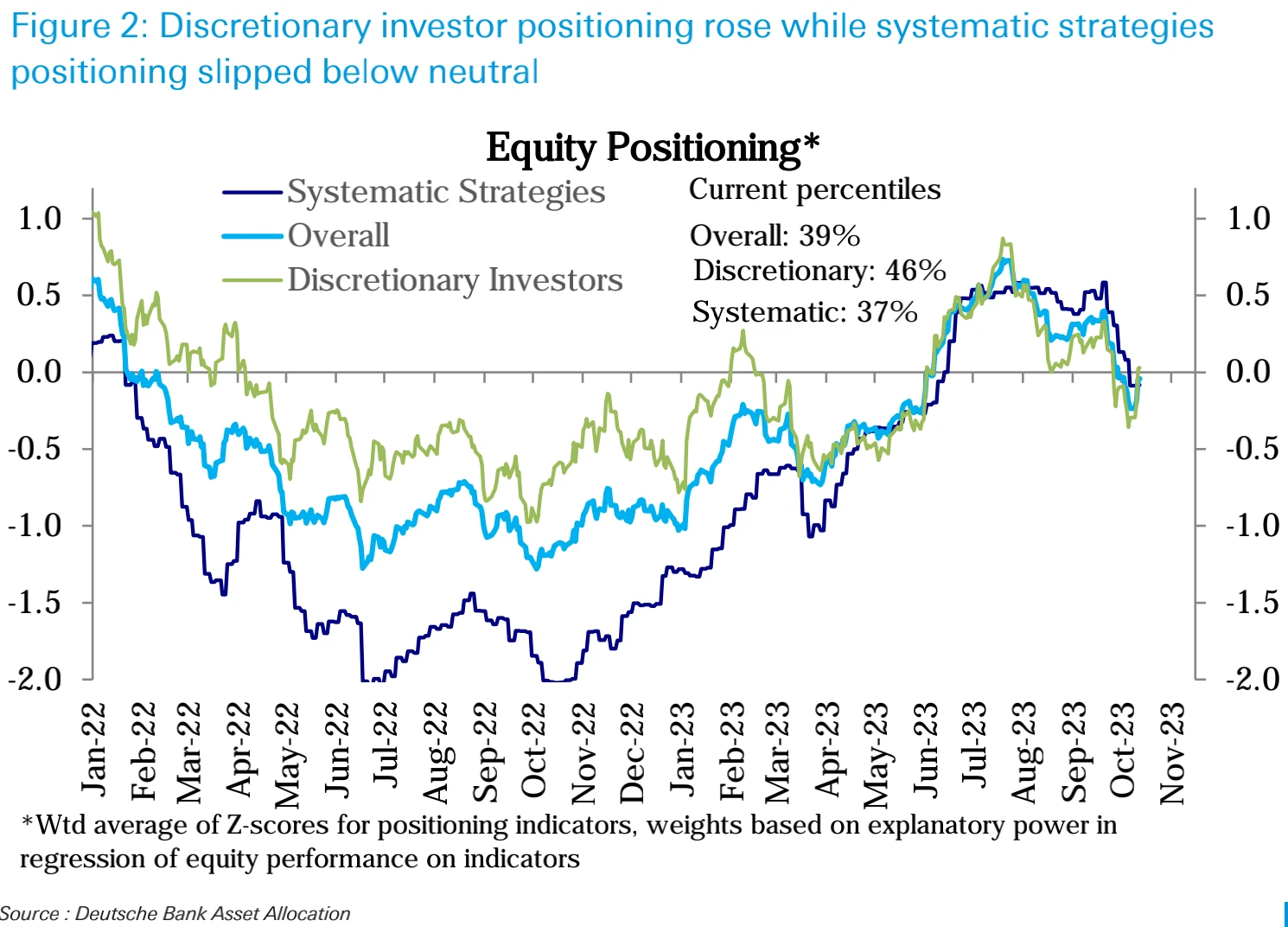 主观投资者仓位从中度空仓转为中性(第 46 百分位),然而系统性策略仓位下降至略低于中性(第 37 百分位):