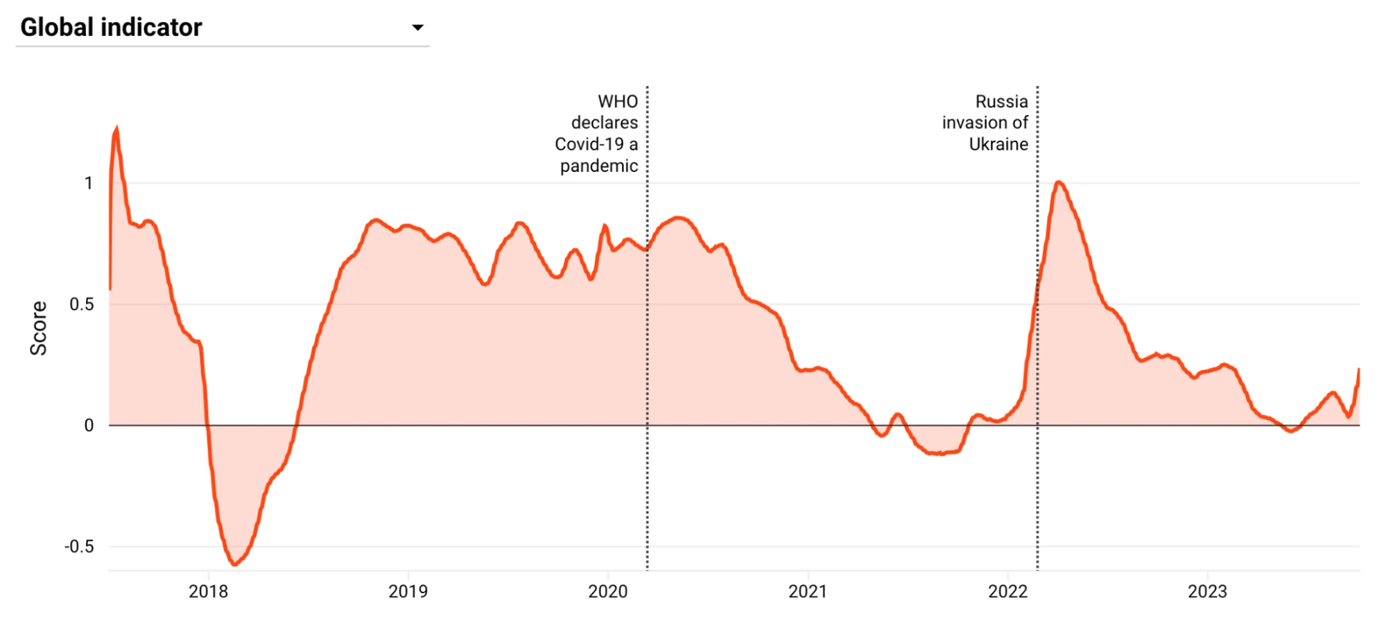 附高频更新的三个风险 index(原理是抓取分析师报告或传统和社交媒体中与特定风险相关的关键词的频率以及与之相关的情绪)目前升幅都还不大: