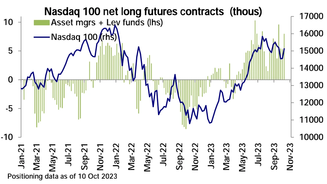 CFTC 数据,美国股指期货净多头持仓第三周下降。标普 500 净多头持仓下降主导了这一趋势,而纳斯达克 100 净多头持仓增加,而罗素 2000 净空头持仓有所减少:
