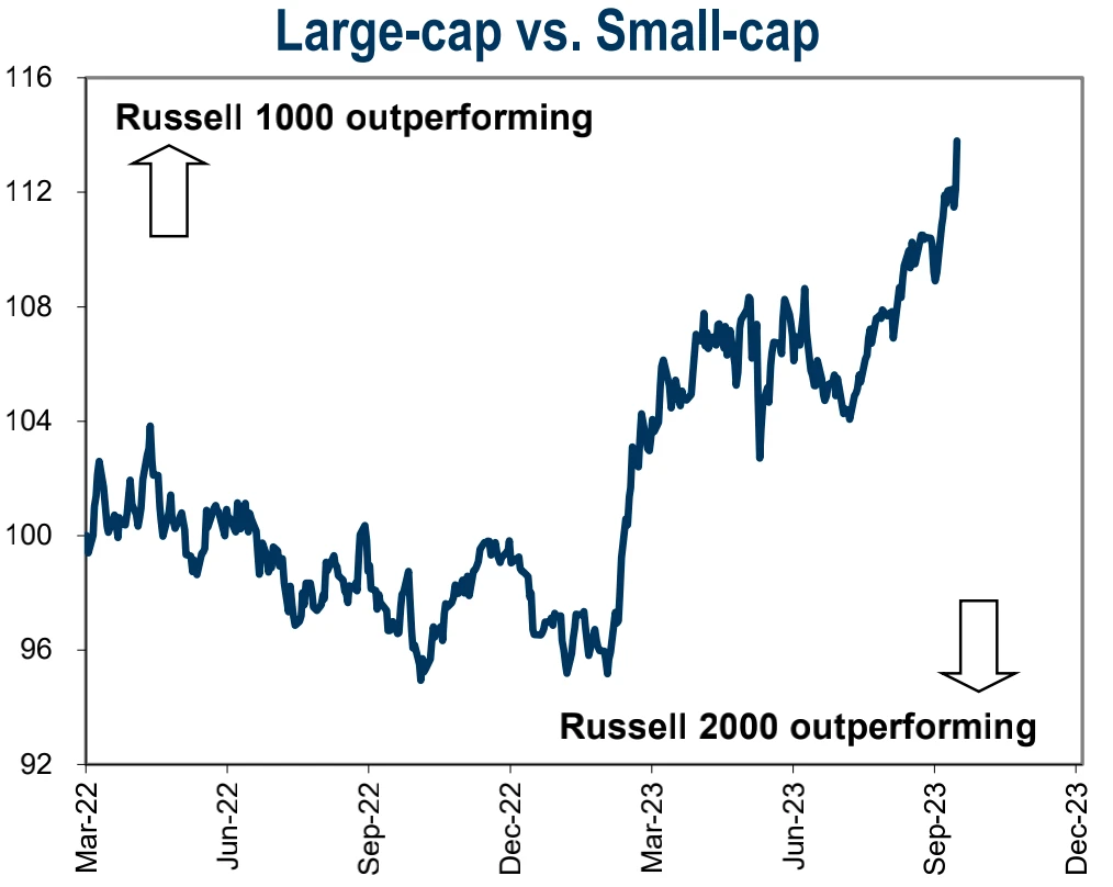 “我们假设美国实现软着陆,我们预测标普 500 指数将在年底升至 4500 点(+ 3% ),在 2024 年上半年升至 4700 点(+ 8% )。虽然我们预计股票会继续从当前水平更高,但我们的预测涨幅低于历史上“鹰派高峰”的表现。与以前的美联储加息周期末相比,当前的估值水平更高,预期的盈利增长也更慢。绝对估值水平目前在历史百分位排名第 85 ,高于之前美联储加息周期末的平均水平(科技泡沫时期除外)。股票与实际收益率之间的收益率差距(作为 ERP 的替代指标)也收窄至 332 个基点,在历史上排名第 88 ,为 2002 年以来最低。”