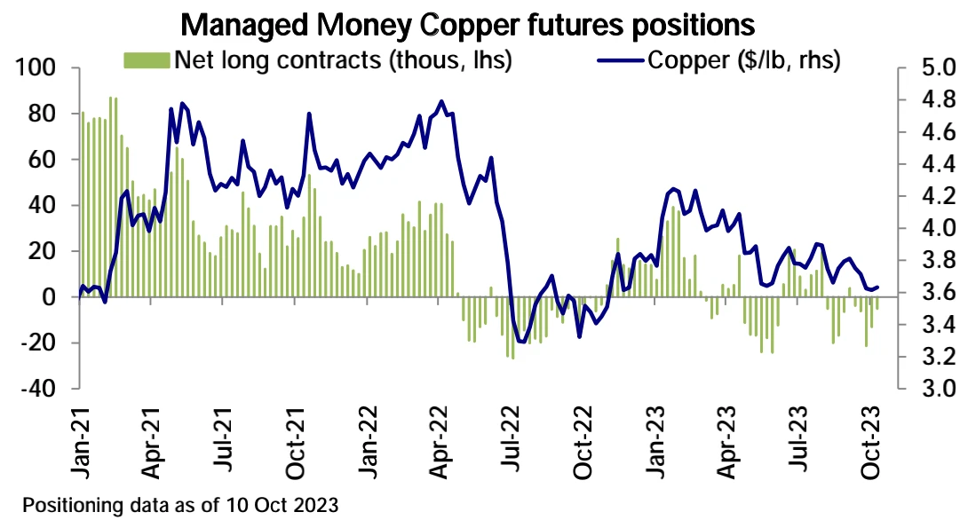 在大宗商品方面,原油净多头持仓下降,而黄金、白银净空头持仓增加。铜净空头持仓减少: