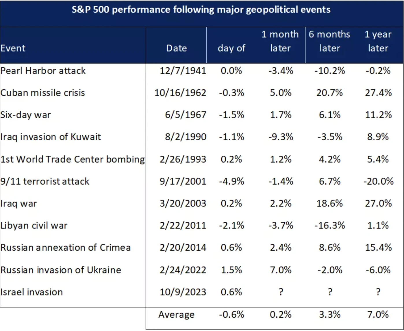 投资者天然会对不确定性感到厌恶,冲突发生后短期内股市可能会下跌,但这种影响通常是暂时的。回顾历史,大多数情况下,即使在冲突发生后一个月内股市表现不佳,但 6 个月或 1 年后股市还是会反弹回升。股市价值的主要驱动因素还是可持续的盈利,地缘政治事件的冲击多半会被基本面盖过。