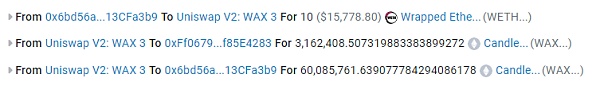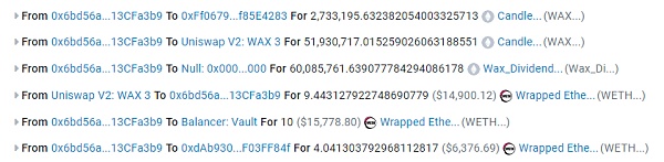 攻击者使用闪电贷的ETH将大量WAX代币兑换出来,导致WAX价格暴涨。