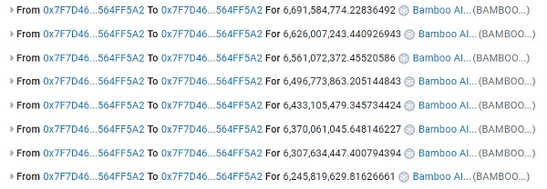 不断通过transfer将代币发送给自己,导致pair中Bamboo代币异常减小;