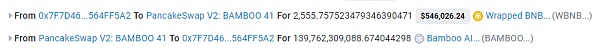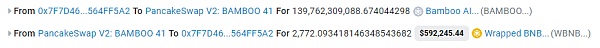 首先使用2555枚WBNB兑换了1390亿枚Bamboo代币;
