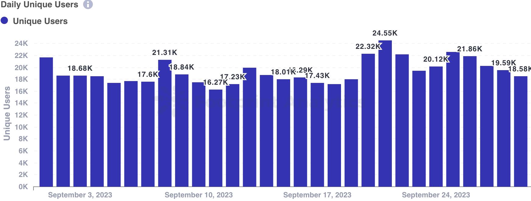 以太坊共吸引了 13.56 万独立用户,与 8 月份相比下降了 8.1% 。Polygon 的独立用户数量也有所下降,共计 9.37 万,降幅为 30.5% 。BNB 独立用户数量为 3.17 万,大幅下降了 42.2% 。在过去几个月中,用户参与度持续下降。