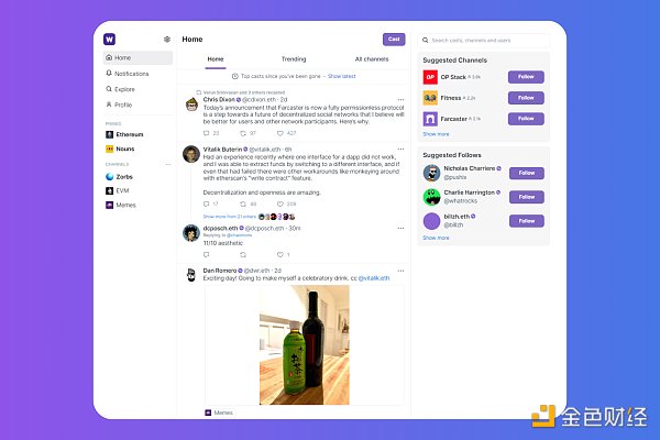 另外,假设你不喜欢 Flink 的 UI,或者受够了开发停滞不前等原因,用户可以选择转移到另一个 Farcaster 应用程序,例如类似于 Twitter 的Warpcast,并且仍然可以在同一个社交图谱种进行构建。