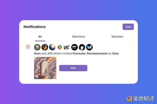 作为一个 web3 系统,Farcaster 也可以成为用户探索加密货币的跳板。例如, Warpcast 拥有专门的名词频道,以传统社交媒体平台迄今为止没有表现出的方式展示 NFT 铸造。
