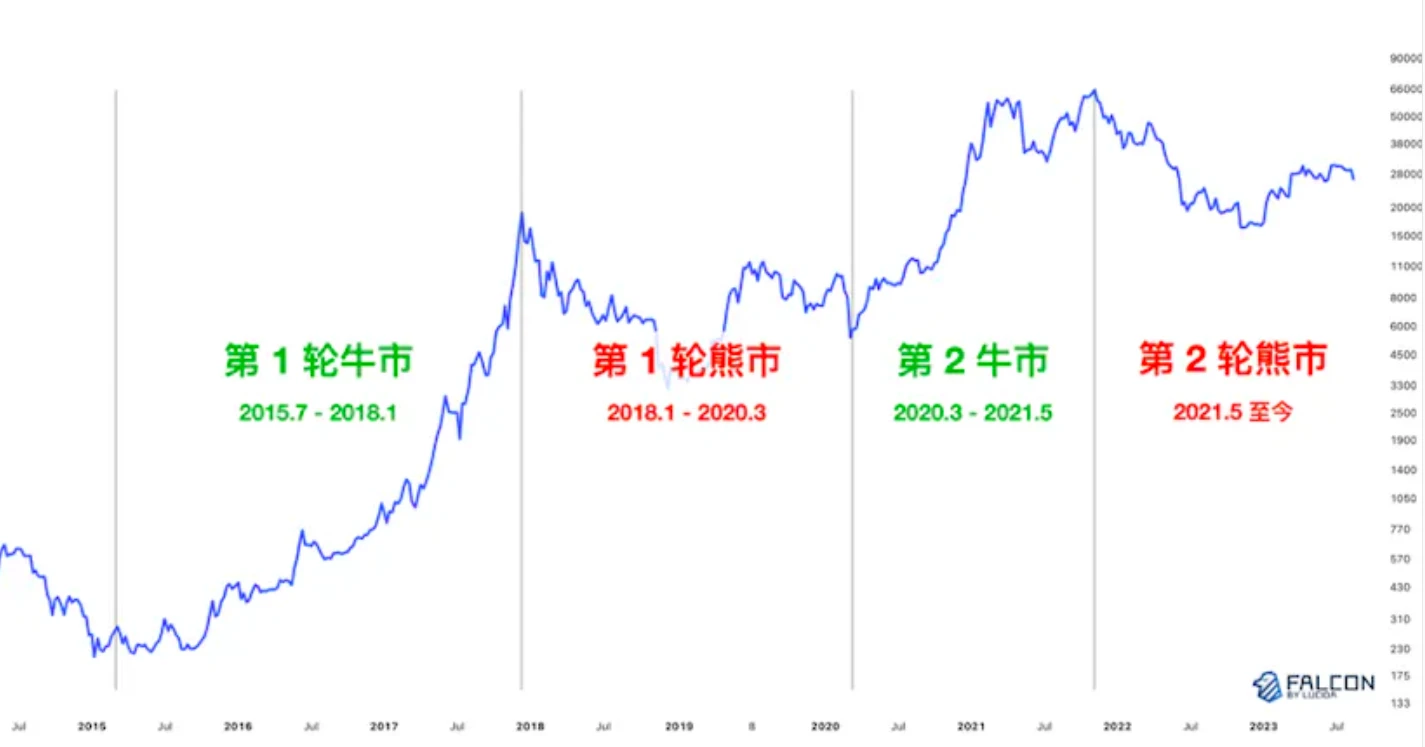 为方便分析,本文将 2015.07-2018.01 定义为第一轮牛市, 2018.01-2020.03 定义为第一轮熊市, 2020.03-2021.05 定义为第二轮牛市, 2021.05-至今为第二轮熊市。