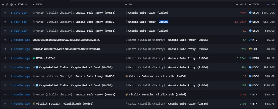 不过,Vitalik Buterin 并没有披露究竟哪些慈善机构、非营利组织或其他项目在出售他捐赠的 ETH,但 Vitalik Buterin 确实拥有一个属于自己的慈善机构,名字叫 Kanro(Vitalik Charity)。为了避免加密社区误解 Vitalik Buterin 利用自己的慈善机构“套现”,我们找到 Kanro 这家慈善机构的钱包地址来一探究竟。