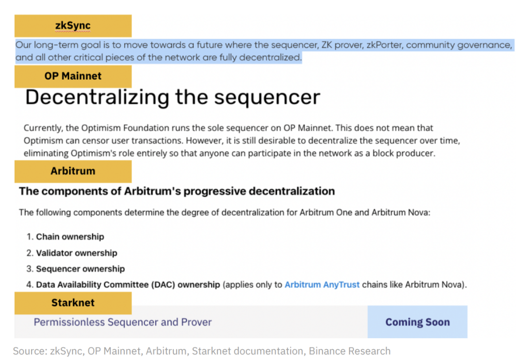 部分主流 L2 的去中心化排序器规划 来源:Binance Research