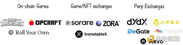 应用程序 Rollup 正在成为扩展一组特定以太坊应用程序的明显赢家。这些应用程序受益于无需许可和强大的所有权保证,但不需要所有应用程序用户之间同时交互。完全链上的游戏是最好的例子。链上游戏受益于游戏资产强有力的所有权,允许匿名参与游戏和允许匿名修改游戏。尽管如此,大多数游戏不需要所有玩家同时互动。其他可以受益于应用程序 Rollup 扩展策略的应用包括 NFT 市场,永续交换和链上 AI 推理。
