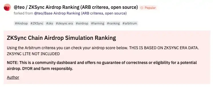 这一切都可能只是我的自然工作流程,不需要任何额外的工作。但问题是,你需要做什么才能了解你在这些潜在空投中的排名?令我惊讶的是,出现了一个由「空投模拟器」组成的整个社区。这些人的存在是为了帮助你了解你相对于其他空投农场主的地位。简单地搜索「空投」,你就可以找到使用过去空投标准来模拟项目如何分发空投的仪表板。