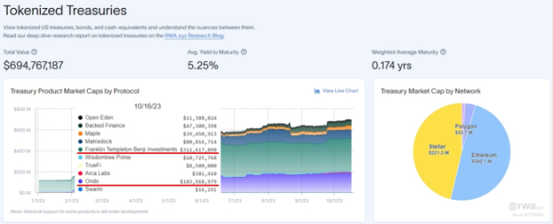Ondo Finance 于 2023 年 1 月推出代币化基金,致力于为链上专业投资者提供机构级的投资机会与服务,其将无风险 / 低风险利率的基金产品带到链上,让稳定币的持有者能够在链上投资政府债券和美国国债。Ondo Finance 的两只代币化基金 OUSG 和 OMMF 的底层资产分别是 BlackRock 的短期美债 ETF 和货币市场基金。