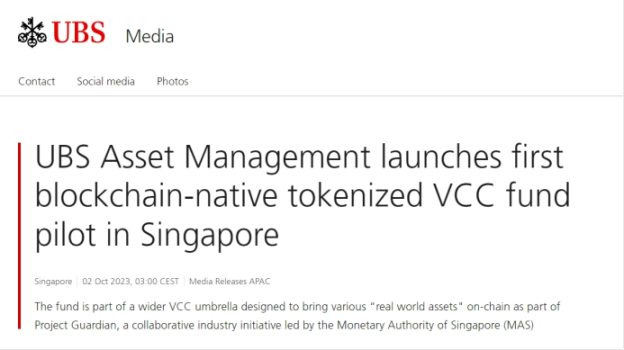 [5] UBS Asset Management launches first blockchain-native tokenized VCC fund pilot in Singapore