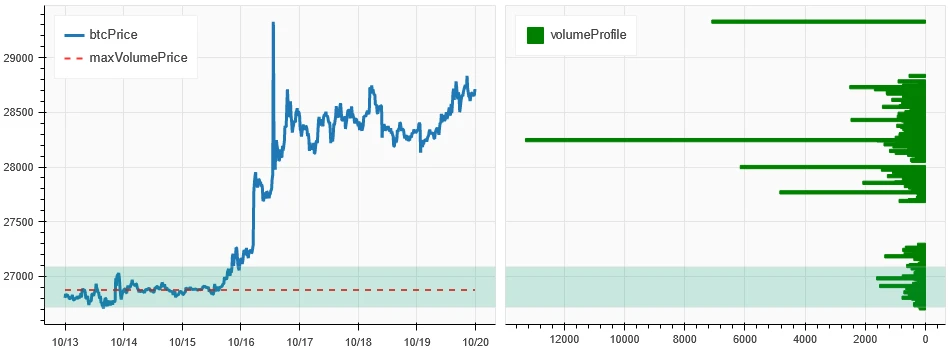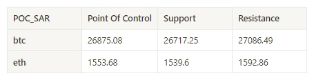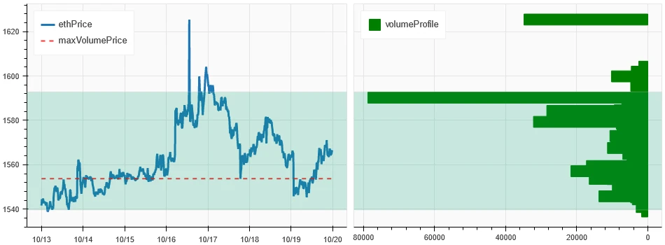 表格显示 BTC 与 ETH 过去一周中的密集成交区间
