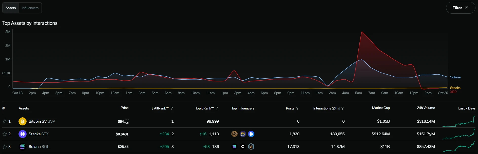 数据来源: [ https://lunarcrush.com/categories/cryptocurrencies](https://lunarcrush.com/categories/cryptocurrencies)