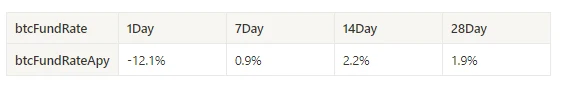 表格显示 BTC 的资费过去不同持有天数的平均收益