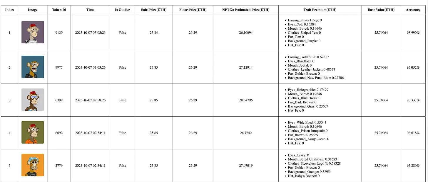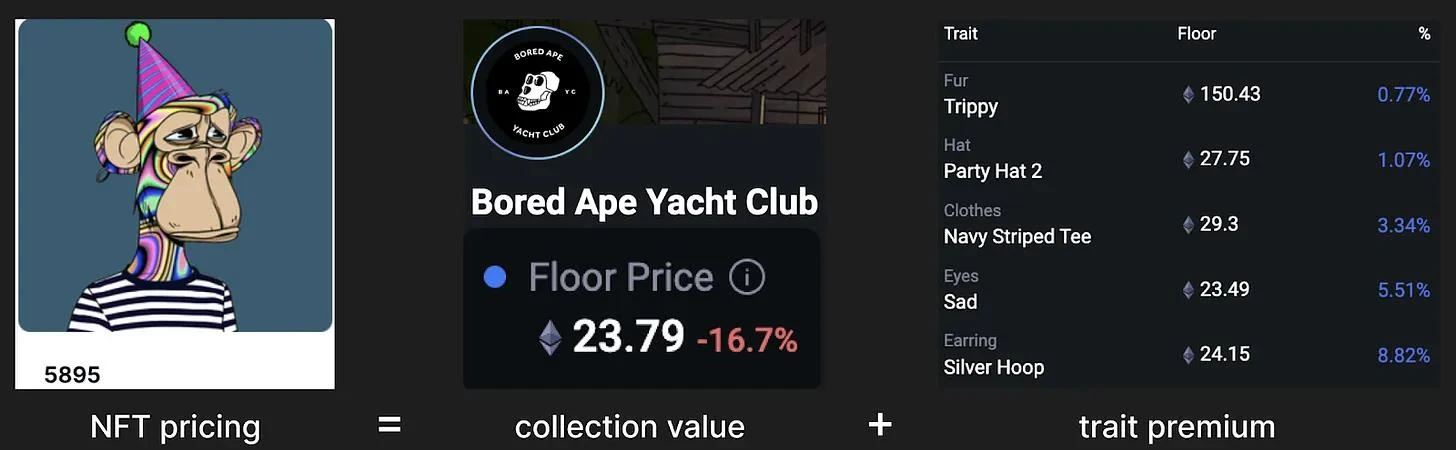 特性溢价:分配给 NFT 的特定、有吸引力的特性或特征的额外价值。它们是地板价和相应的特性权重的乘积。