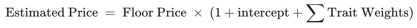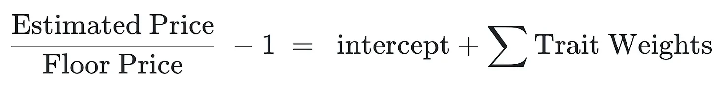 NFT 定价包括基于集合的价值和其特性溢价。溢价模型的核心公式如下: