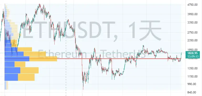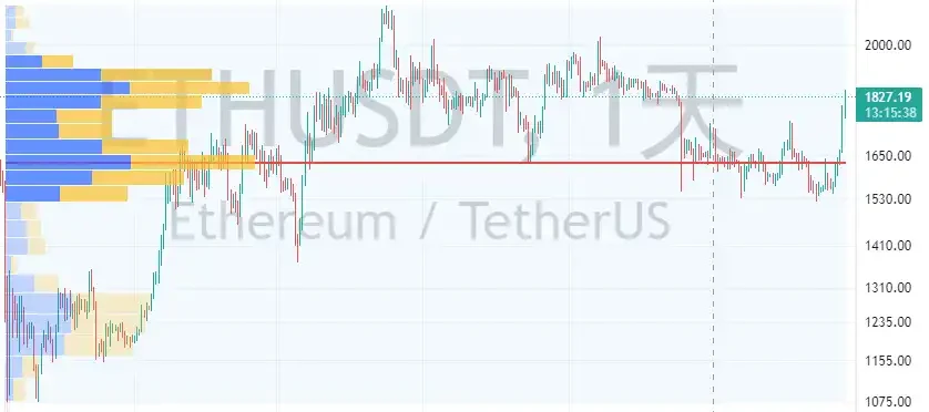 同时,我们会使用 Trading View Pro 中的 VPVR 指标,来简单判断一下币价将何时受阻,以及会在那些价位获得一定支持。(仅 BTC 及 ETH)
